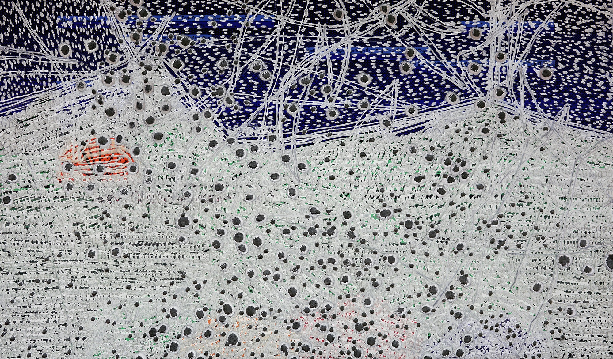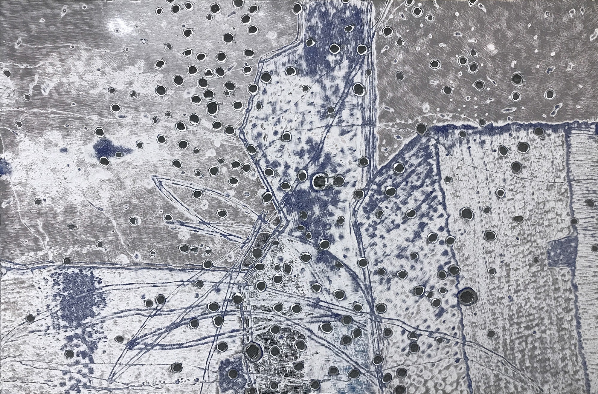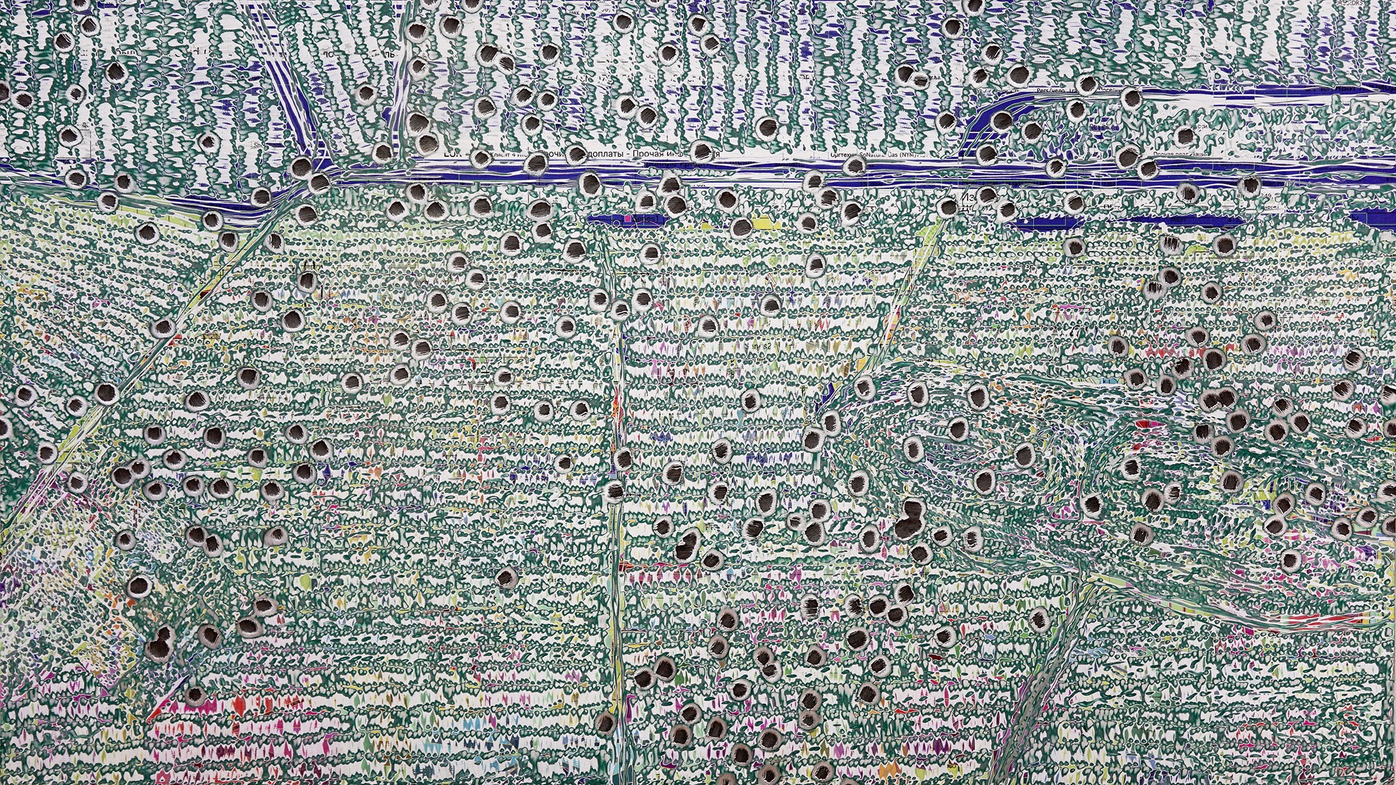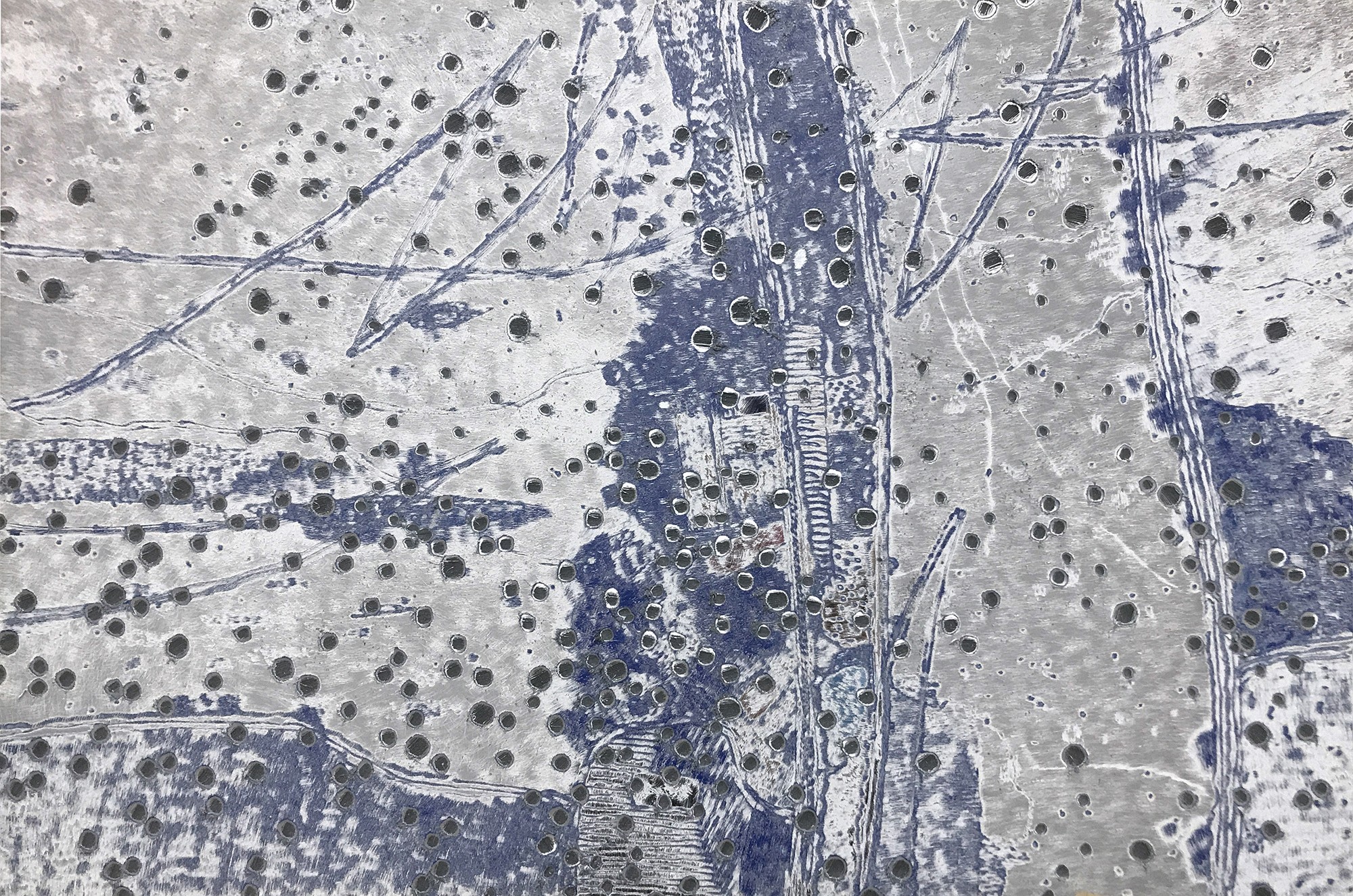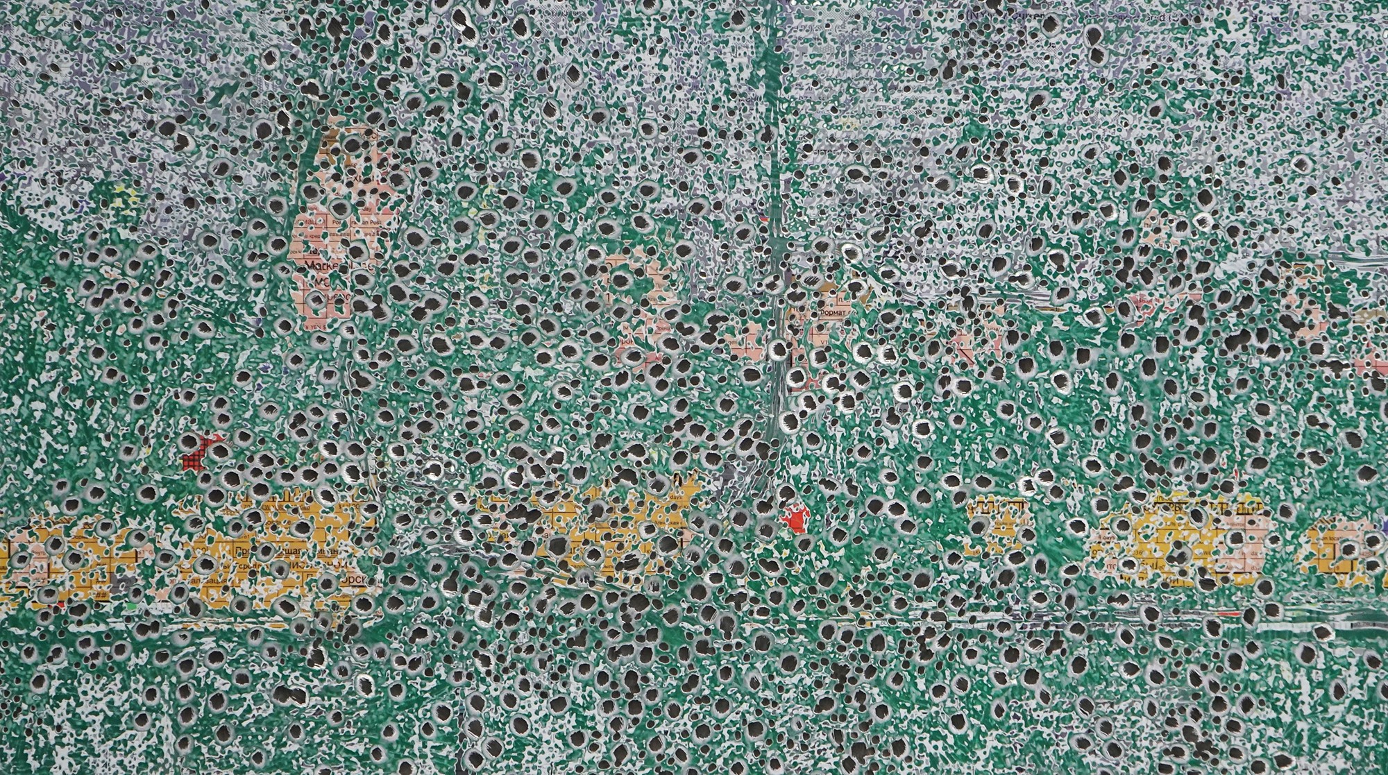 7000 holes, from the “Bombed” series, 2020. Mixed media, 150 x 204 cm