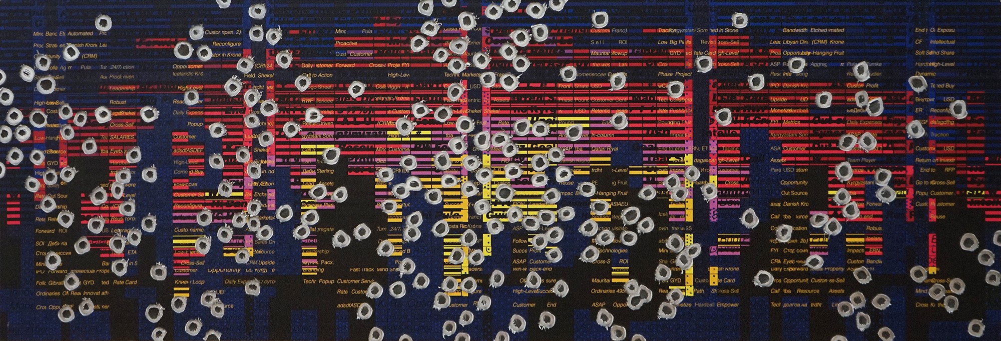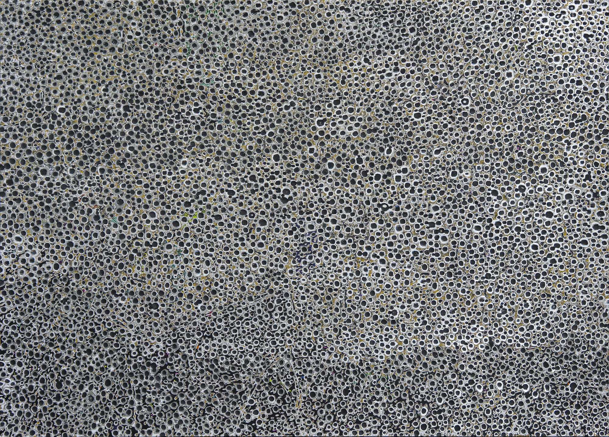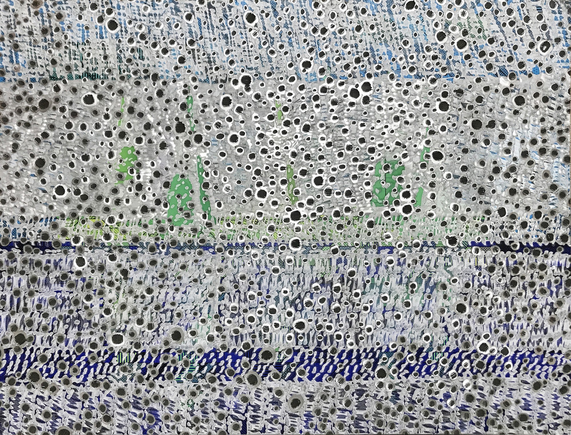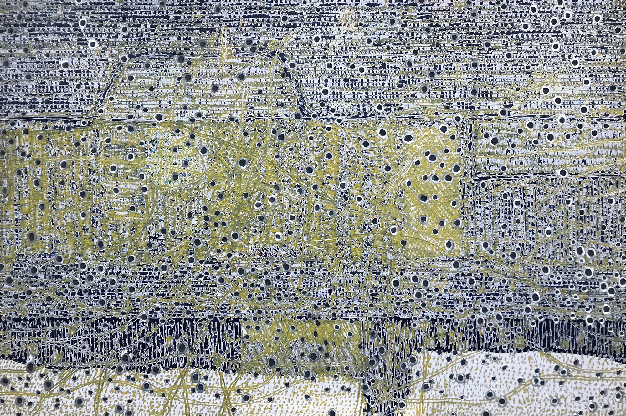 7000 holes, from the “Bombed” series, 2020. Mixed media, 150 x 204 cm
