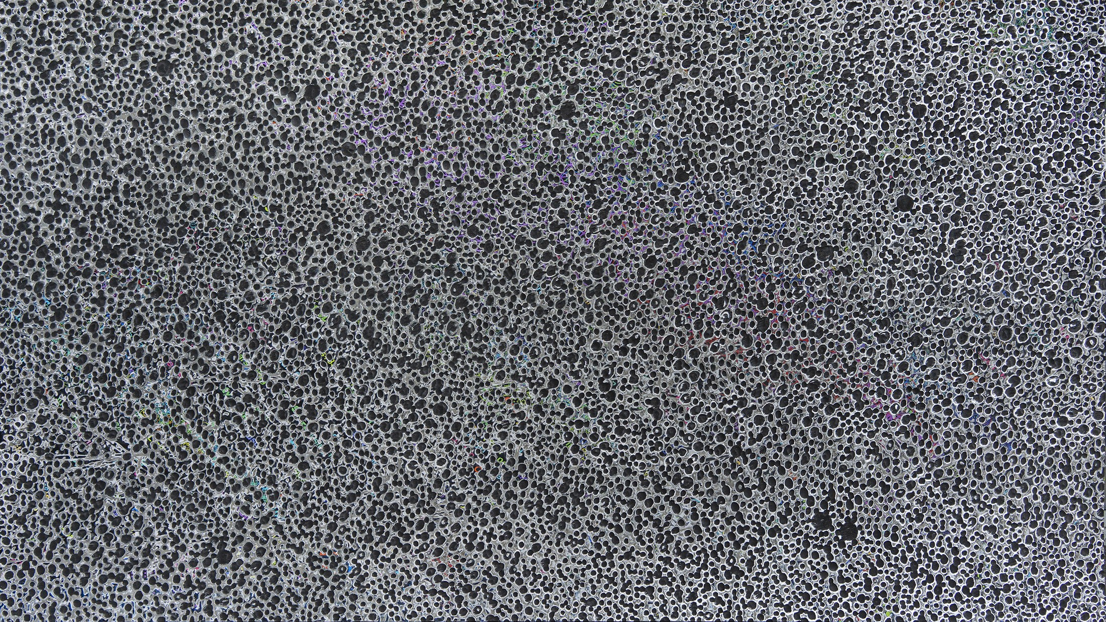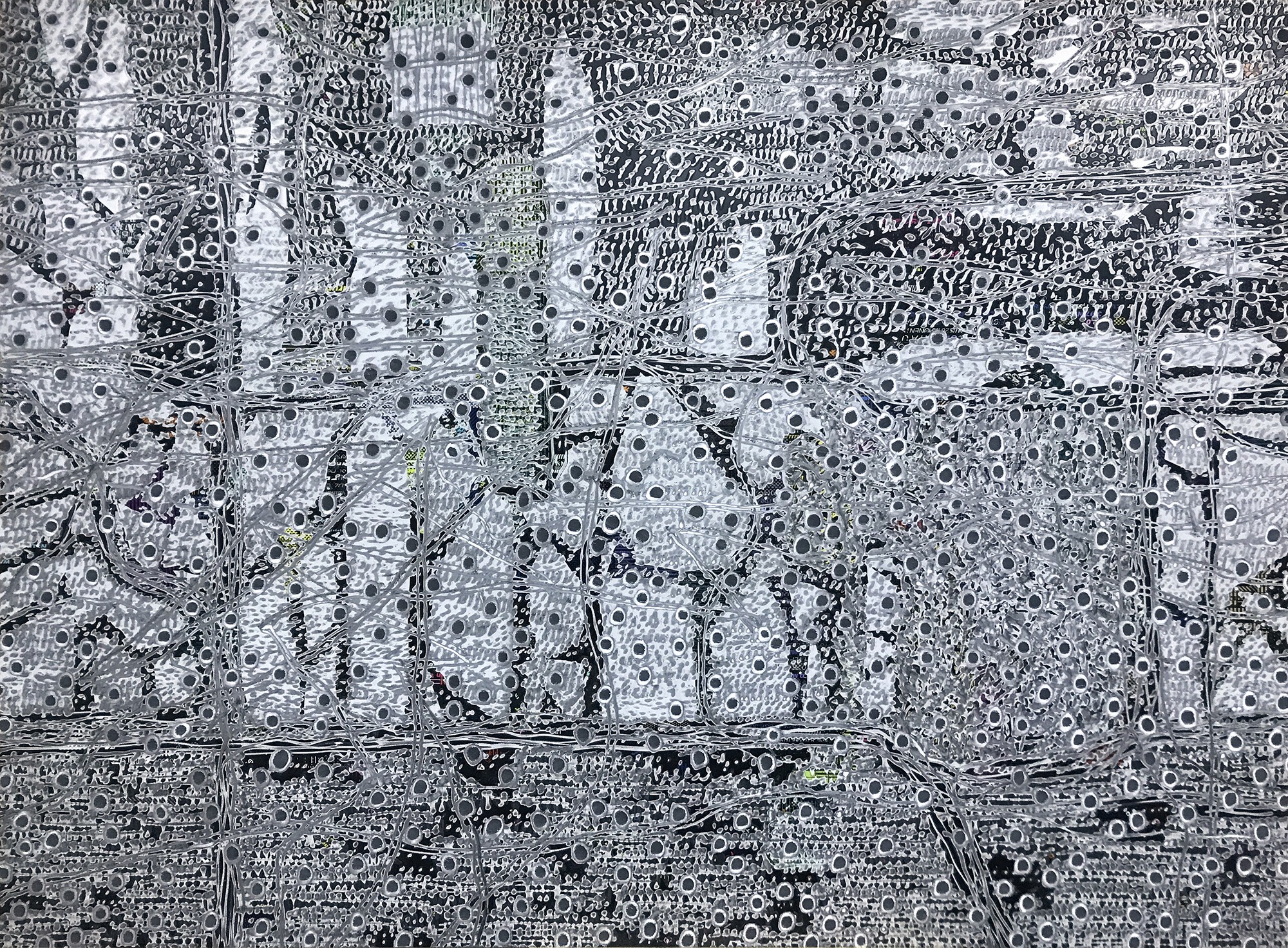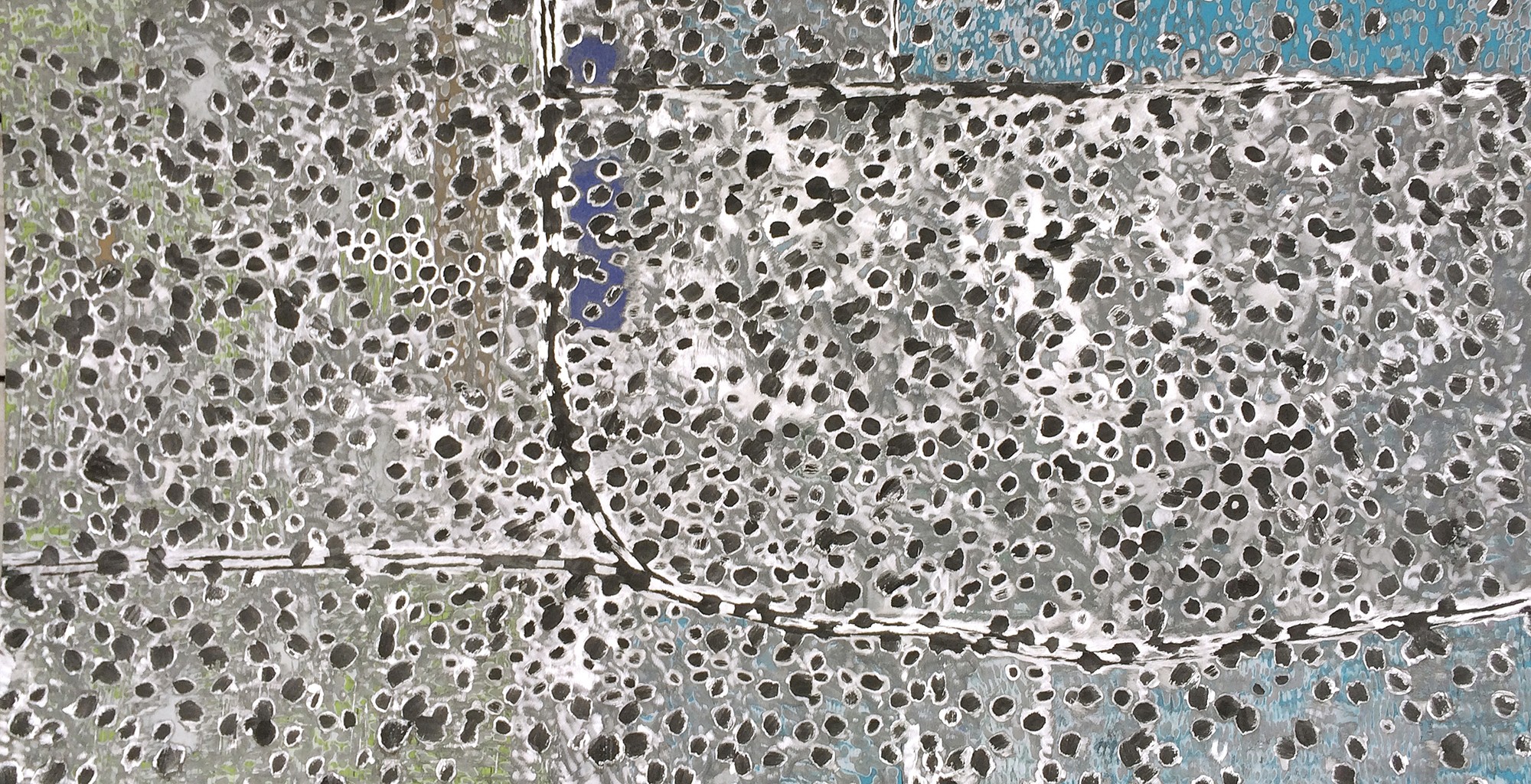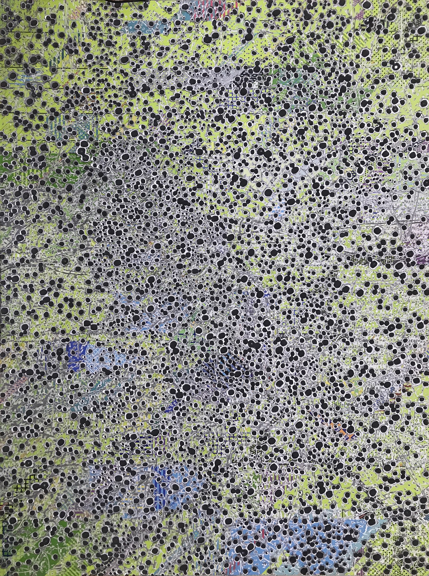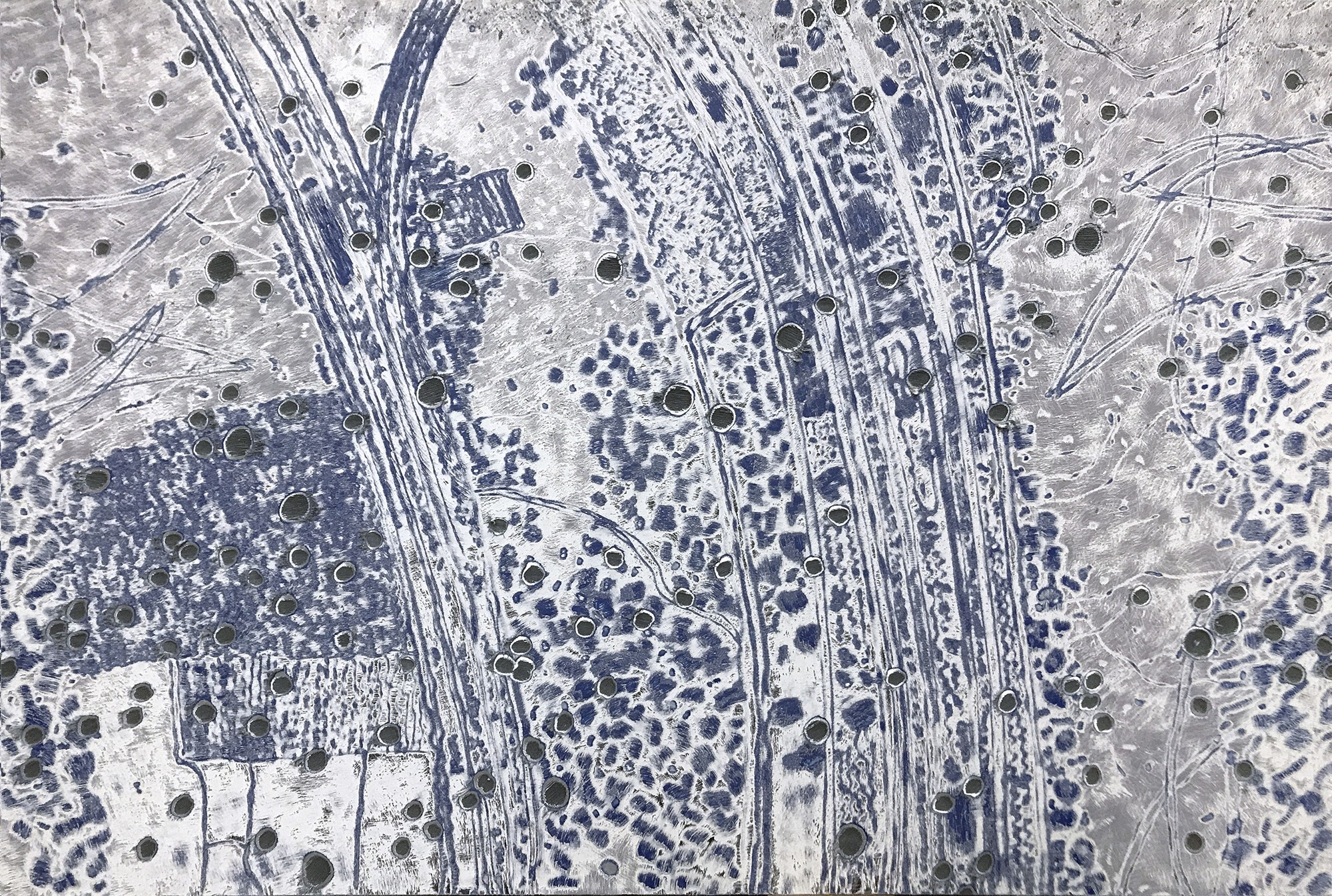 7000 holes, from the “Bombed” series, 2020. Mixed media, 150 x 204 cm