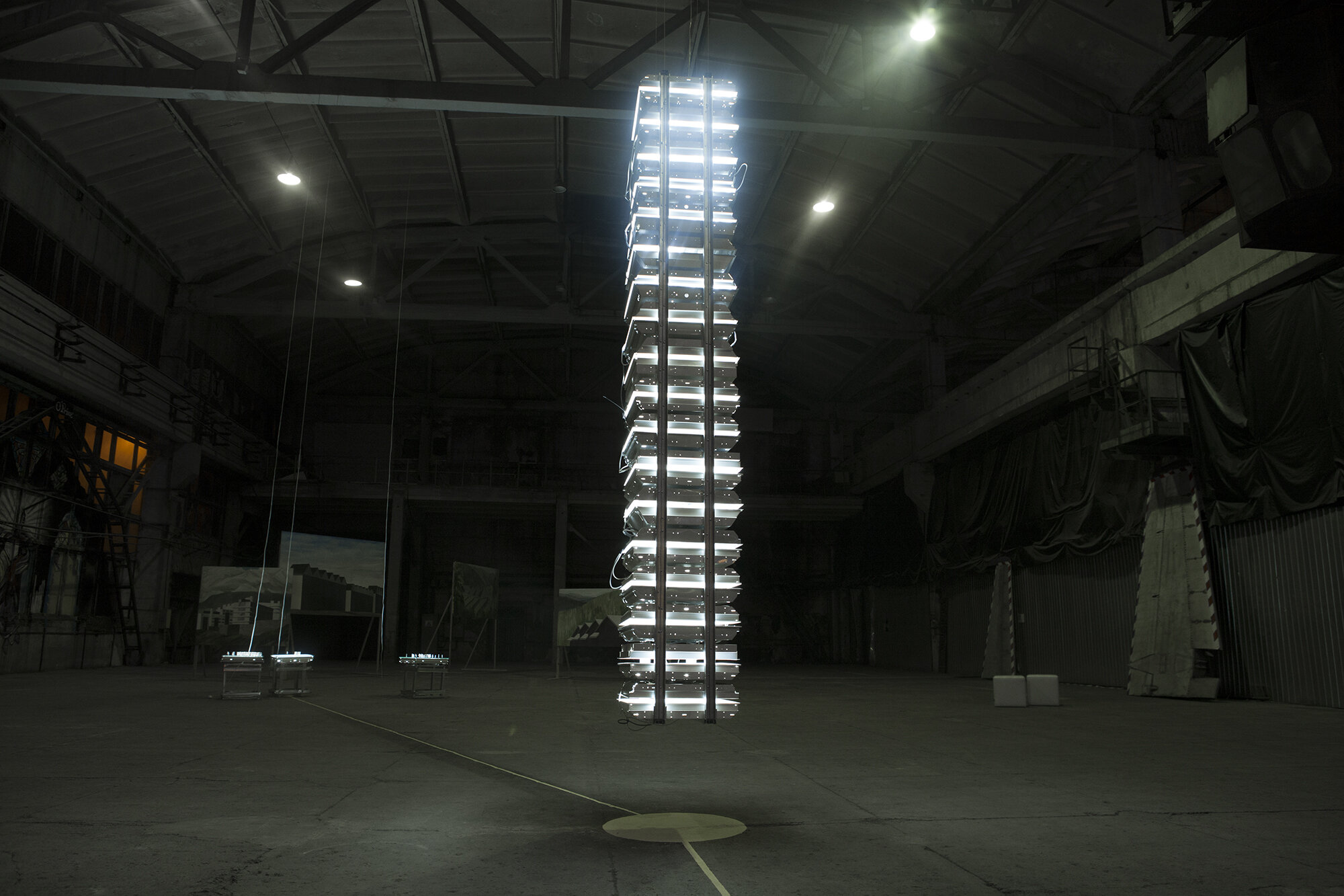44 raster lamps, which lighten themselves, consuming about 4 kilowatt-hours of energy. The tower, consuming about 4 kilowatt-hours of energy, practically exists for itself.