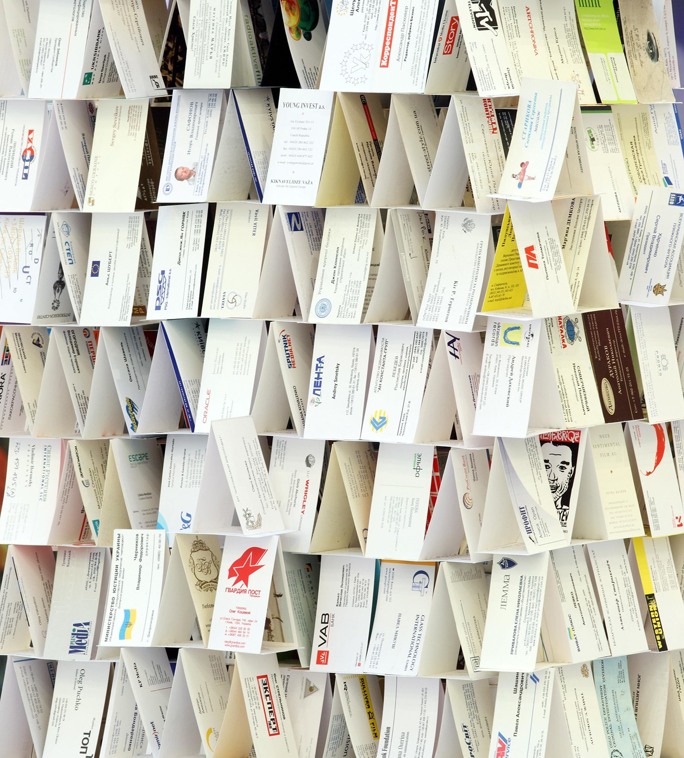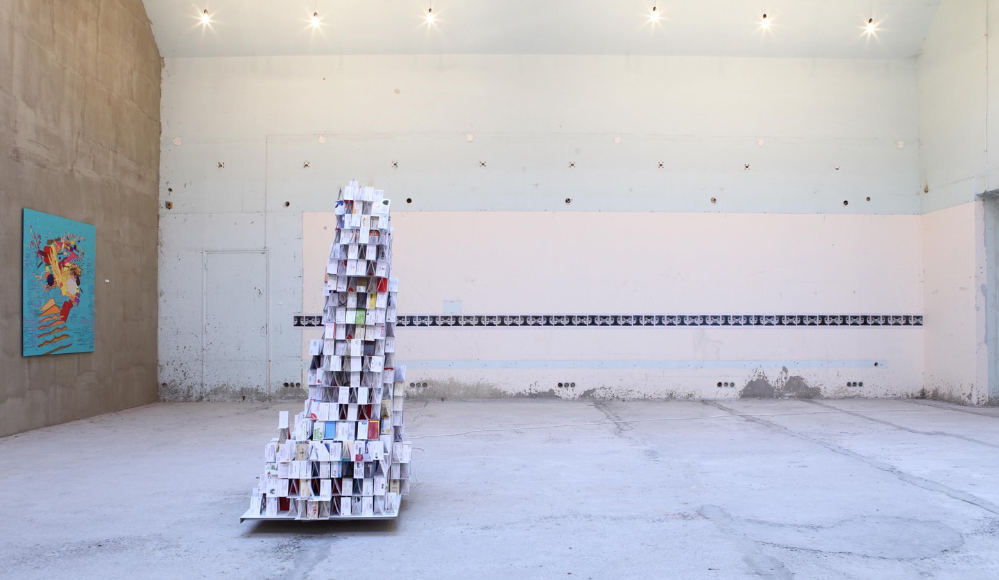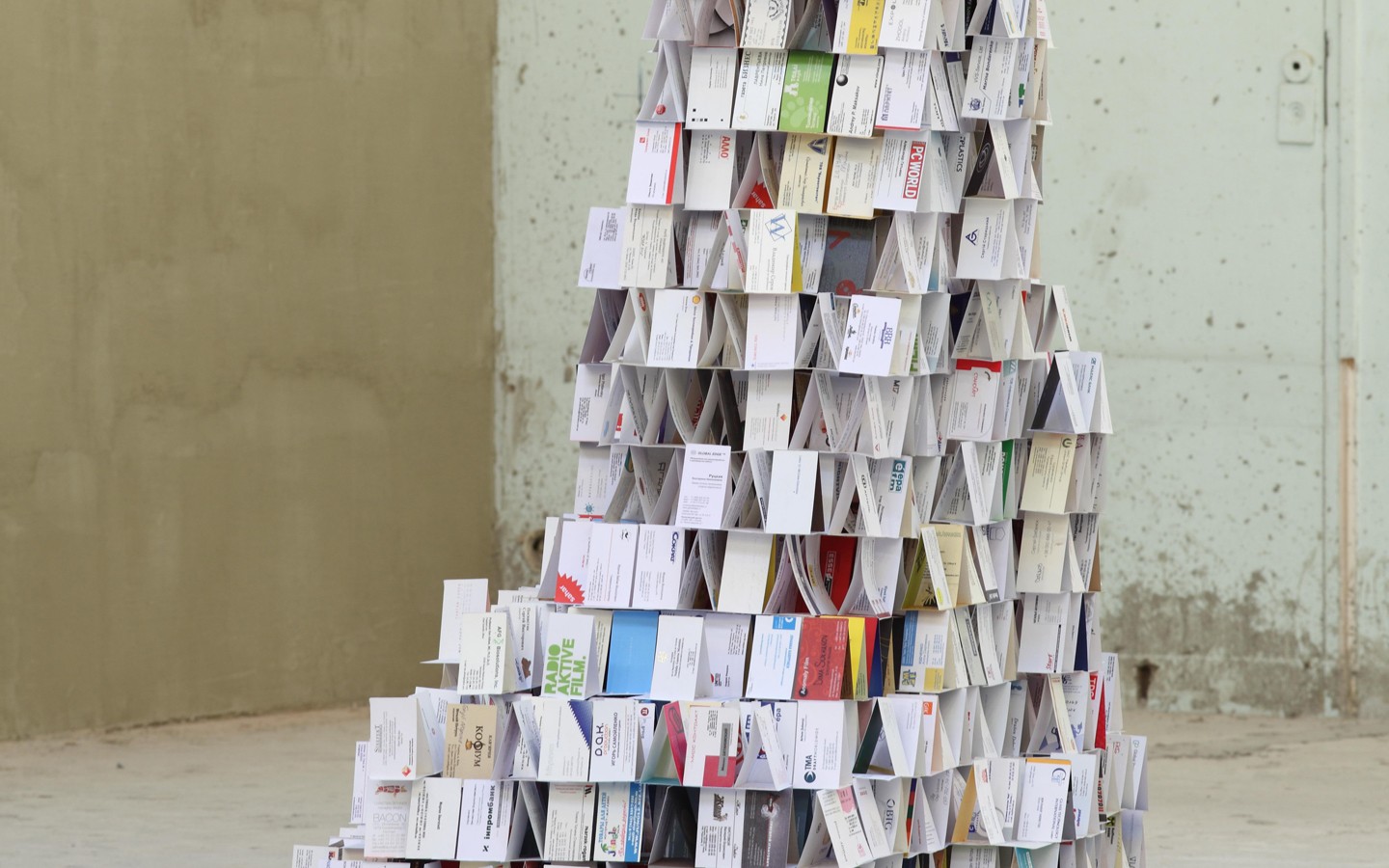 A three-meter house of business cards, which has no clear shape – either unfinished or destroyed tower. A special mechanism in the base gives constant vibration to the entire structure.