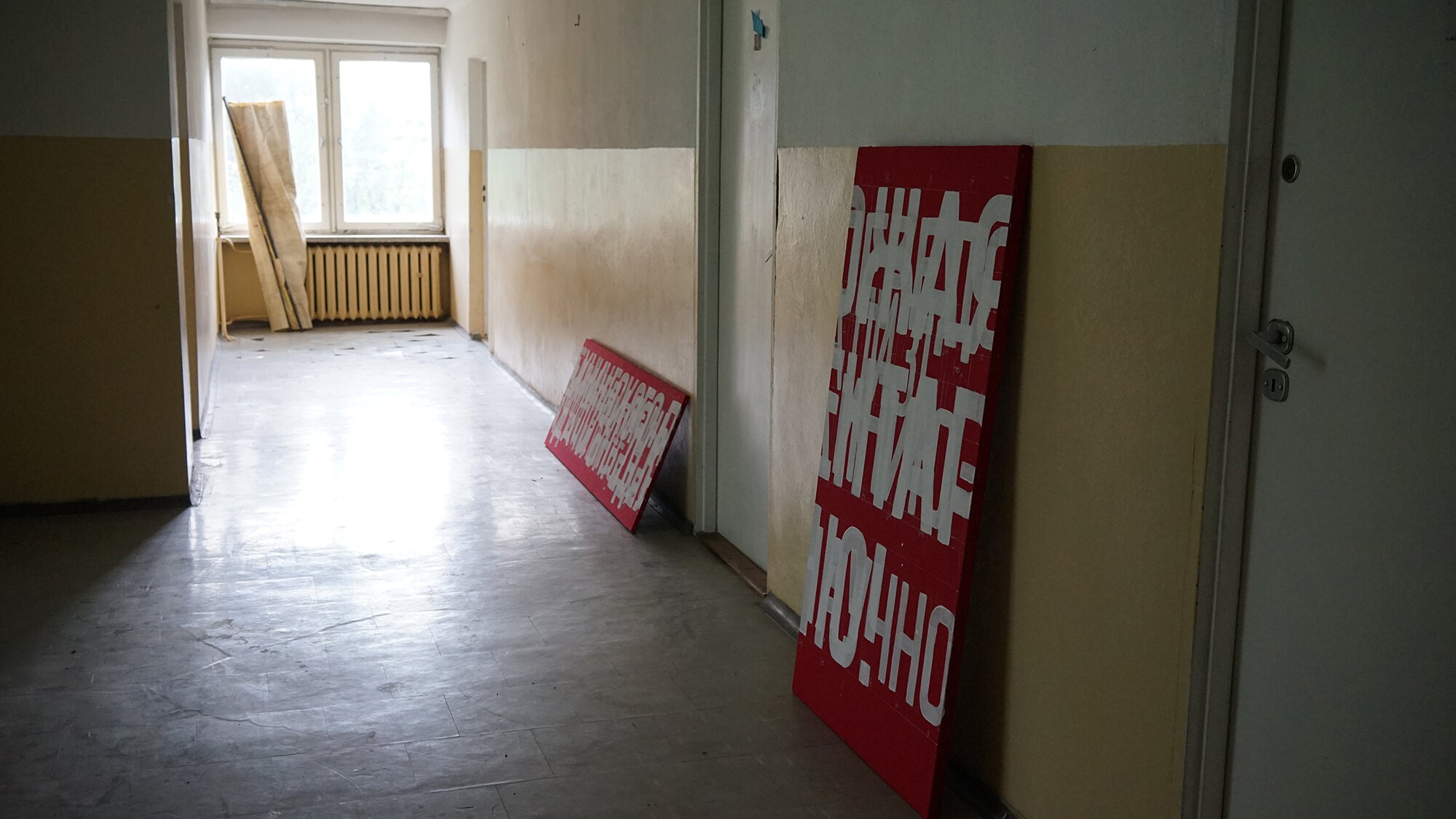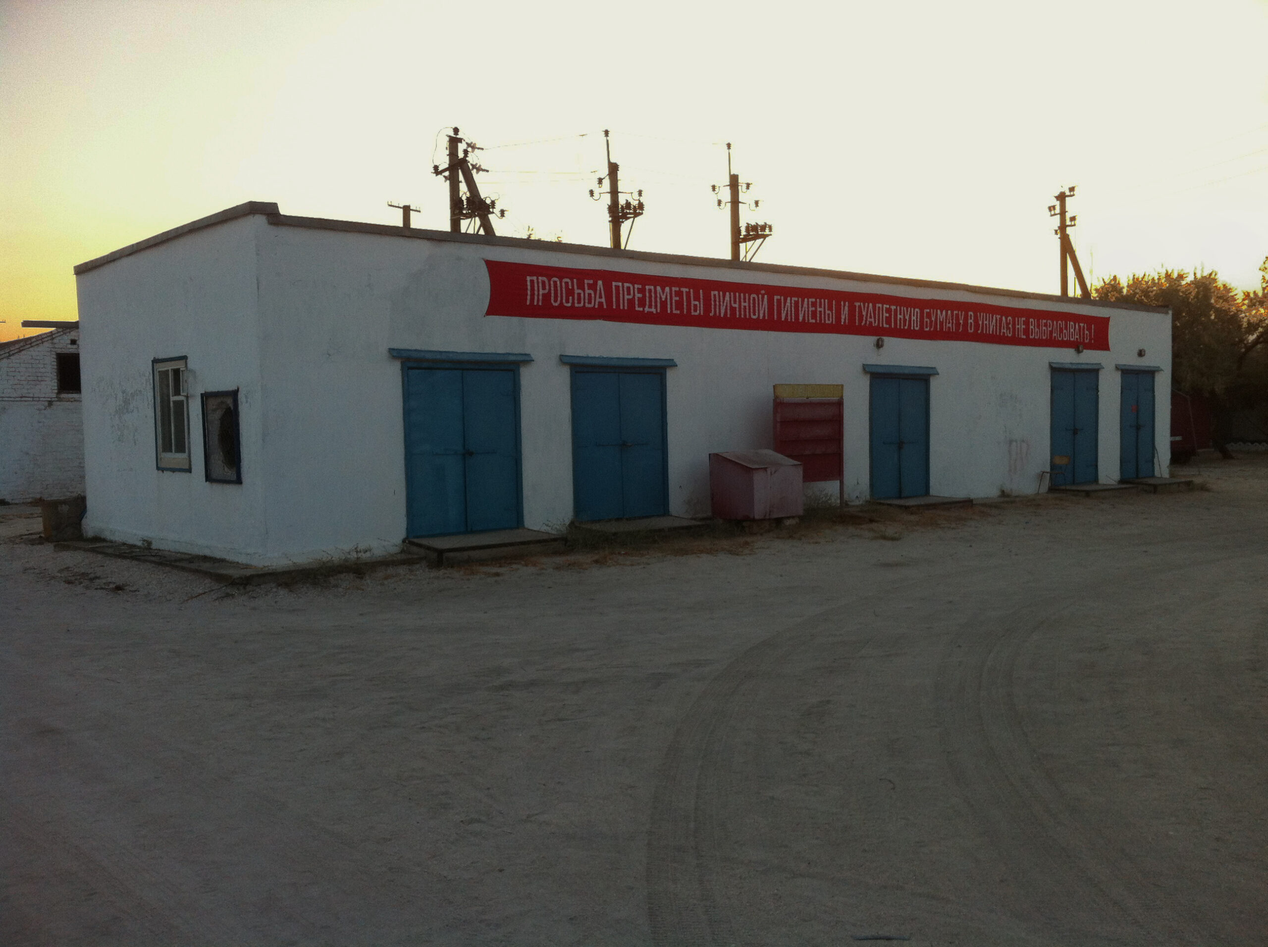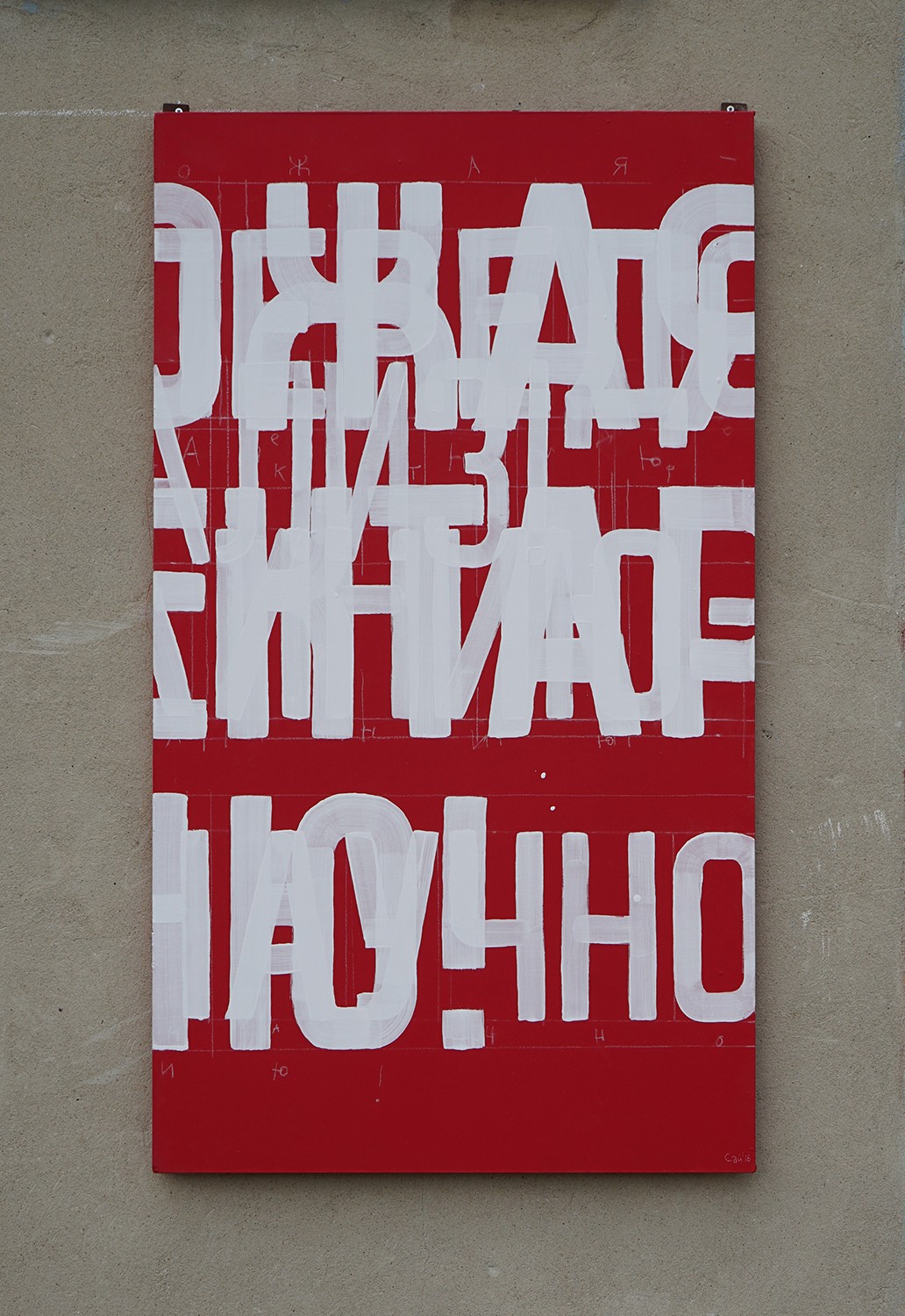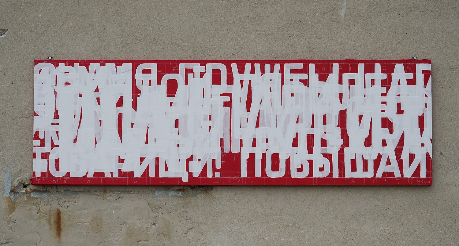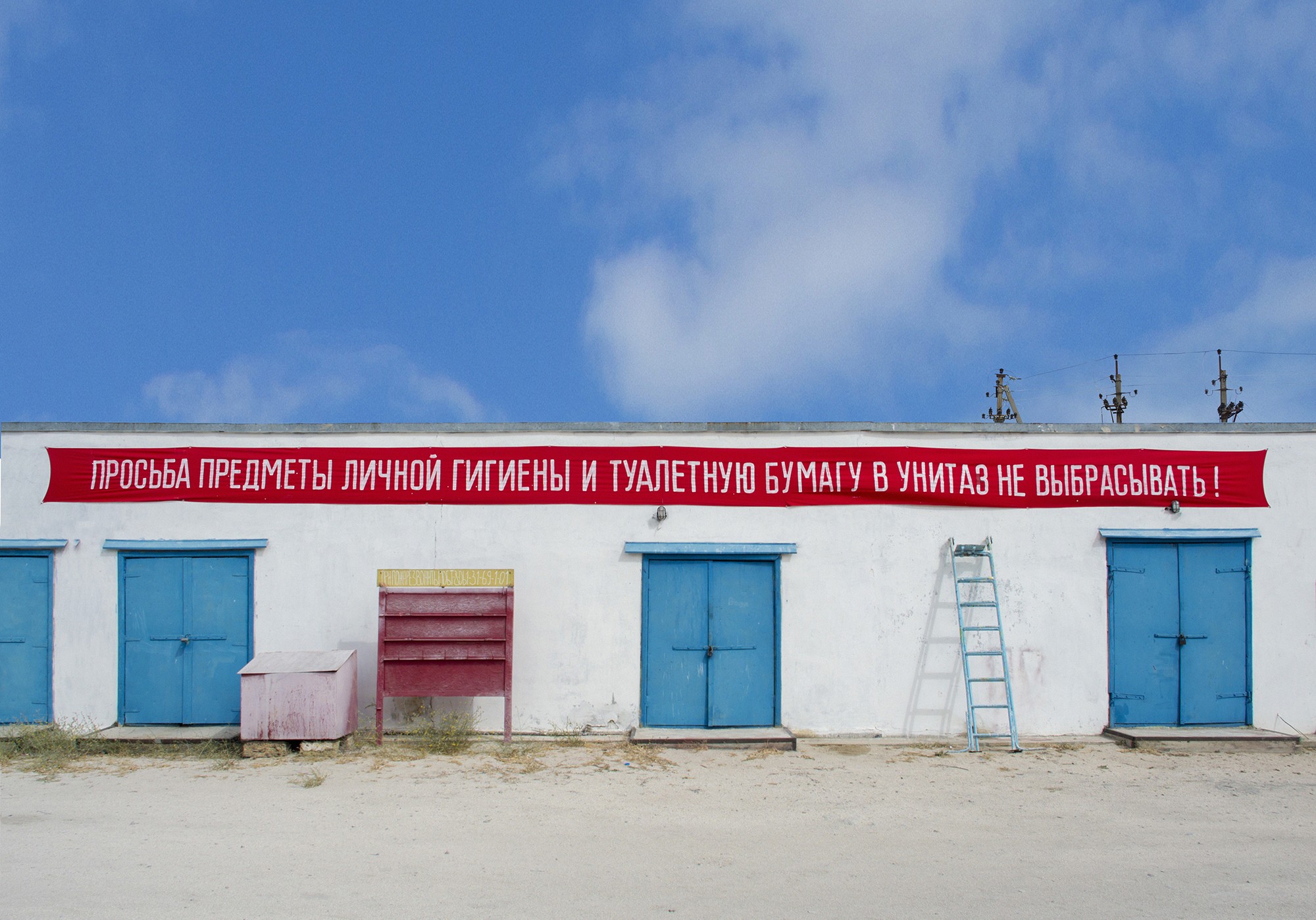 Something as meaningless, but more personalised, can nowadays be found in every public toilet in the post-Soviet space (please do not throw paper in the toilet bowl) – and placing it out in the manner of old propaganda is restoring its existence, along with the feeling of reading the text at the time.
